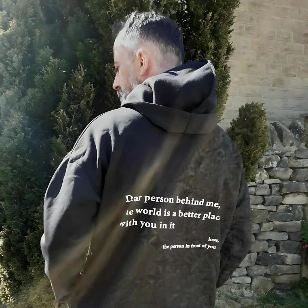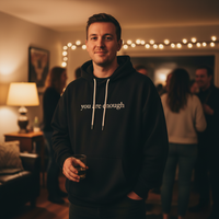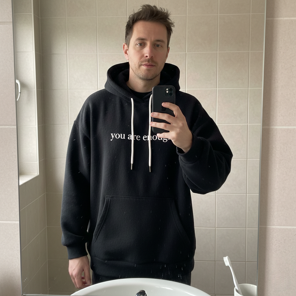 Anonymous / 30y 22 NOV. 2025Verified BuyerGot me through a breakup."She left three weeks ago. Every morning I wake up and my brain immediately starts. You're not enough, that's why she left, you'll always be alone. This hoodie doesn't make that stop. But it gives me something else to read first. Some mornings that's all I need."Was this helpful? 31 1